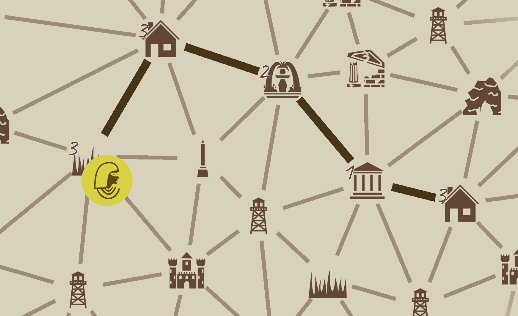 - (This is not implemented.) Incomplete paths also provide points at the end of the game, but the location scores are not doubled.